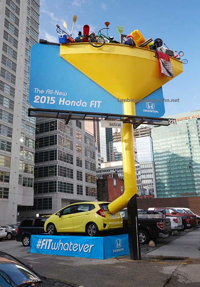 Honda fit, cái gì tuy nhỏ mà khá nguy hiểm. Không chỉ đơn thuần là một biển quảng cáo, nó hàm ý mạnh mẽ về mặt công năng sử dụng. Đây là một bản thiết kế mô hình quảng cáo cực kỳ ấn tượng và sắc sảo!
