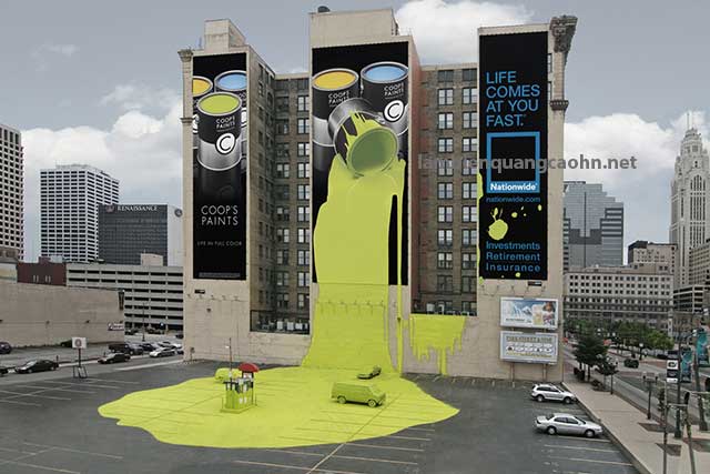 Đây là một sự phá hoại hay là một sự lạm dụng về màu sắc? Không, đây hoàn toàn là một thiết kế biển quảng cáo xuất sắc của một hãng sơn từ năm 2006. Nó đã vượt qua mọi giới hạn thông thường của một biển quảng cáo bằng cách phủ sơn bãi đỗ xe và cả chiếc ô tô bên dưới.