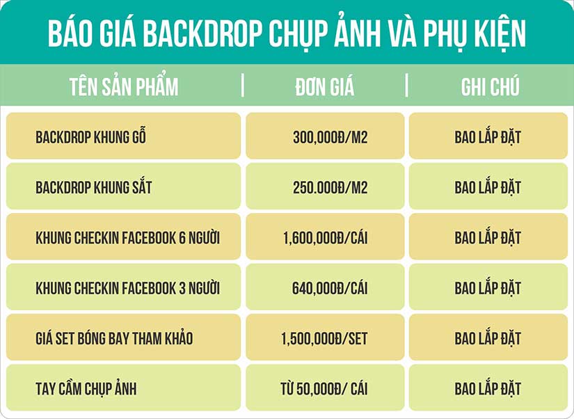 Đôi khi backdrop chụp ảnh có giá thành cao hơn vì được trang trí cầu kỳ, tuy nhiên nó cũng có thể thấp hơn nhiều nếu backdrop chính được trang bị màn hình LED kèm âm thanh.