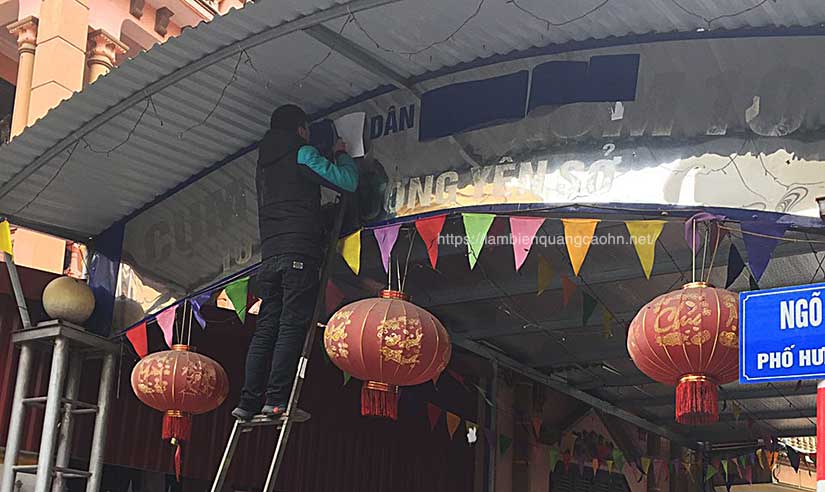 Biển chữ alu vàng gương lắp tại nhà văn hóa tổ dân phố. Chỗ này có thể dùng biển bạt nền đỏ chữ vàng để giảm chi phí