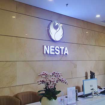 Biển công ty mica có đèn, tự phát sáng tại quầy lễ tân