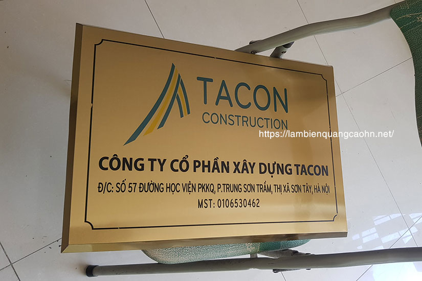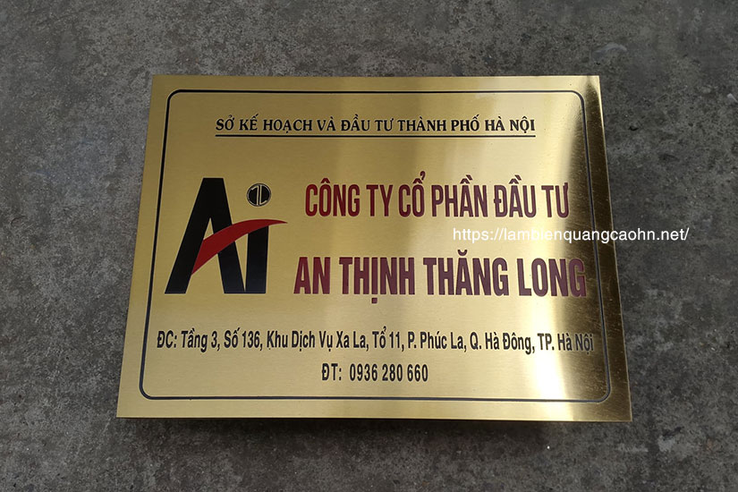 Một mẫu biển công ty bằng inox đảm bảo thông tin đầy đủ được thể hiện trong một diện mạo chỉn chu, sang trọng sẽ gia tăng tính chuyên nghiệp cùng độ đẳng cấp của công ty.