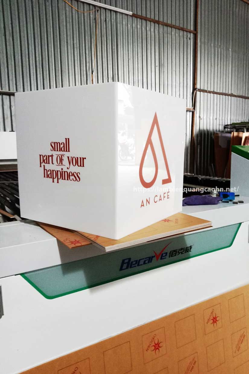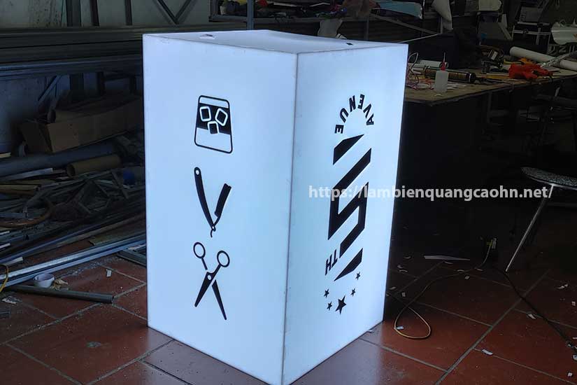 Đây là một dạng biển vẫy đặc biệt, nó được làm từ mica dạng hộp mà không hề có khung viền tăng cứng bao quanh. Ánh sáng của biển dịu nhẹ được cấp bởi đèn LED siêu sáng bên trong. Hình ảnh, logo và chữ trên biển được sử dụng công nghệ in UV trên mica. Đây là dạng biển được đánh giá rất cao về chất lượng mỹ thuật. Bên cạnh đó nó còn có thể sáng tối đa 5 mặt với 3-4 mặt dành cho hiển thị nội dung quảng cáo. Biển này đẹp, độc, lạ vì vừa giống đèn trang trí, vừa là biển hiệu. Dự đoán năm 2024 đây là một trong những biển vẫy được khách hàng đặt số lượng rất nhiều vì độ độc lạ của nó.