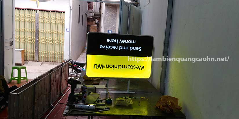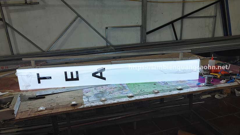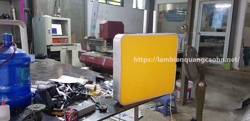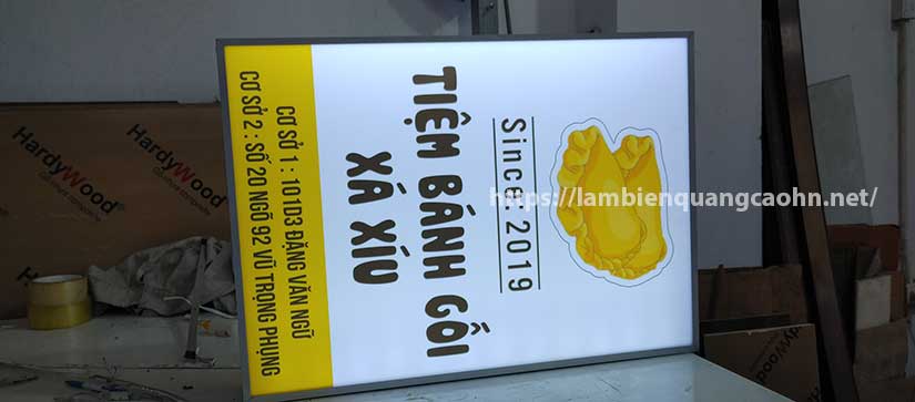 Nguyên tắc làm biển hộp đèn kiểu cũ là biển cần có độ dày từ 10-12cm, biển càng dày ánh sáng trên mặt càng đều và mịn, và việc bạn nhìn thấy biển vẫy hộp đèn có viền cạnh dày ở trên đường phố Hà Nội là không hiếm, tuy nhiên một bảng vẫy hộp đèn mica viền mỏng gây ra một một cảm giác mới mẻ vô cùng. Ví dụ như biển viền nhôm trong ảnh này chẳng hạn, viền nó chỉ dày tầm 8cm mà thôi mà ánh sáng tương đối là hợp lý.