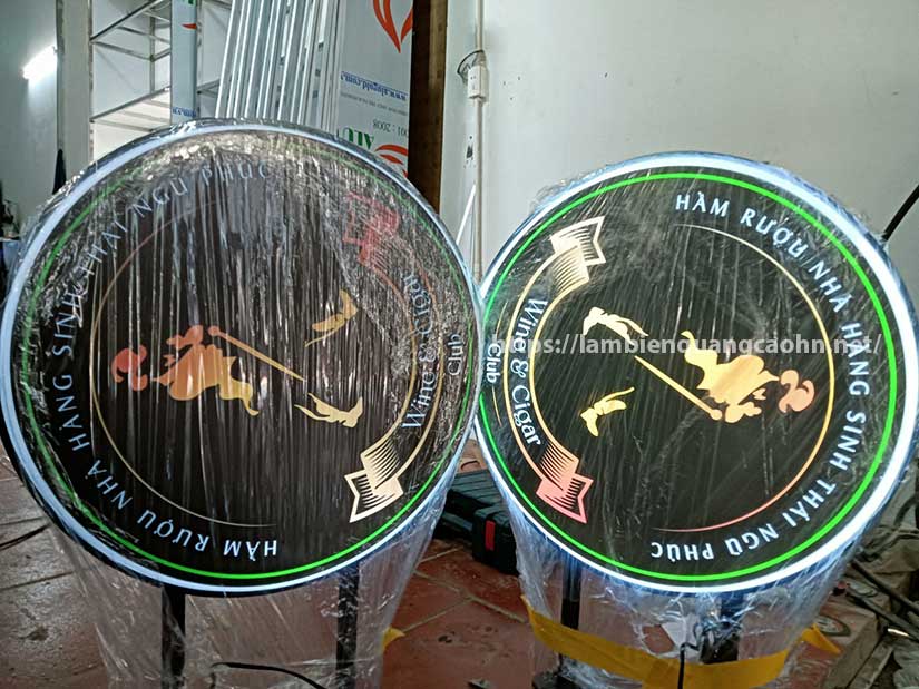 Còn có tên gọi là biển hút nổi, biển hộp đèn tròn, nó được cấu tạo từ hai mặt mica hình tròn, hơi cong ở viền, biển có viền và tay đỡ bằng kim loại sơn màu đen. Kích thước tiêu chuẩn của biển là đường kính 60x60cm. Bên trong hộp mica tròn này có gắn LED, tại rìa cạnh, thành ra biển có ánh sáng không quá căng, nhưng nhờ đó mà giá thành ở mức chấp nhận được