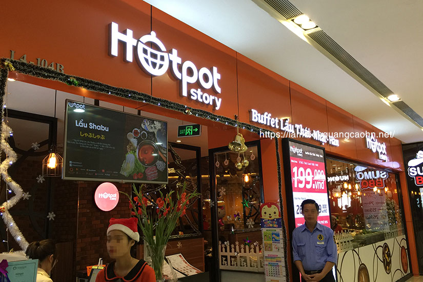 Trong trung tâm thương mại, ánh sáng không hề thiếu, nhưng quảng cáo thì không được yếu. Người ta vẫn làm biển cho các gian hàng trong trung tâm thương mại như bình thường, gần 100% trong số đó dùng chữ hộp đèn. Điều đó thực ra còn chưa đủ, bên trong các shop đó, trên quầy kệ, trên tường logo hoặc chữ dạng hộp đèn được triển khai khá nhiều.