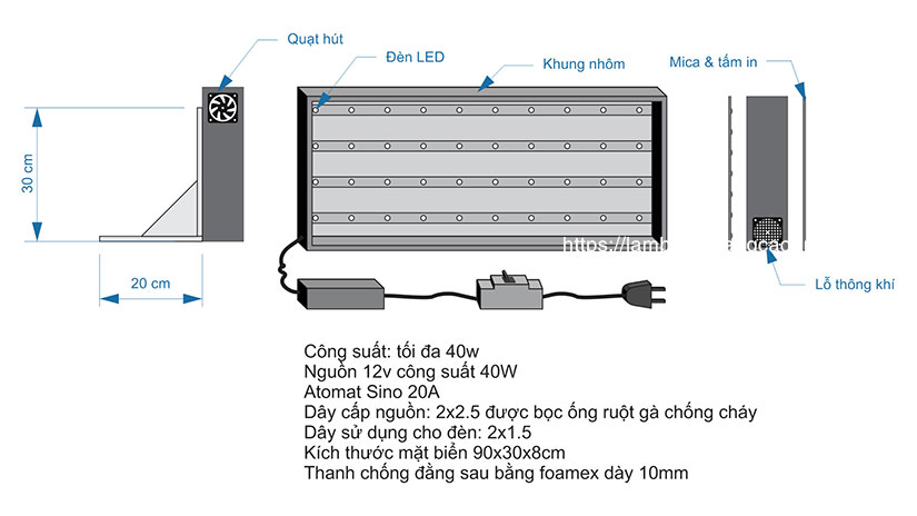 - Biển hộp đèn phải có quạt làm mát để thoáng khí tránh LED bị quá nóng gây hỏng và chập. Điều này không chỉ giúp đảm bảo an toàn mà còn đảm bảo tuổi thọ lâu dài cho đèn giúp tiết kiệm chi phí sữa chữa, thay mới.