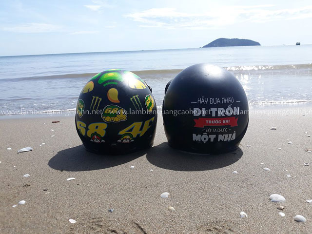Đấy là mũ bảo hiểm của nhân viên lắp đặt biển quảng cáo cho chuỗi các cửa hàng tạp hóa thôi. Lúc này họ được đi ngang qua một bờ biển dài và đẹp.