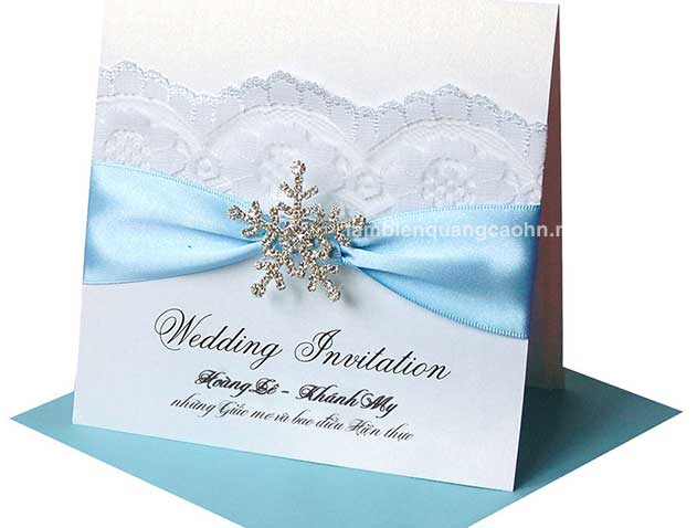 Tấm thiệp mời được tô điểm bởi những hạt nhỏ óng ánh - ép nhũ kim, mạ vàng, mạ bạc sẽ khiến thiệp có vẻ ngoài lấp lánh.