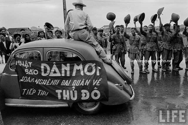 Thay vì in bạt như bây giờ, người ta cắt chữ dán lên tấm vải như thế này 1946