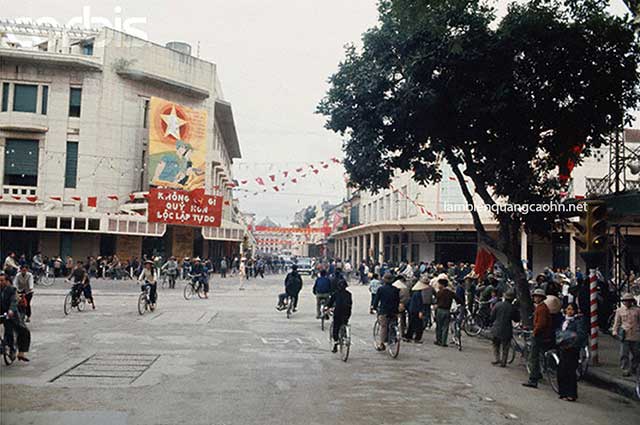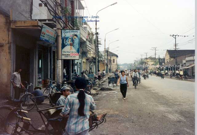 Phố Khâm Thiên, năm 1986 kia la fbieenr vẫy gắn lên cột điện. Giờ ta gọi nó là banner đường phố!