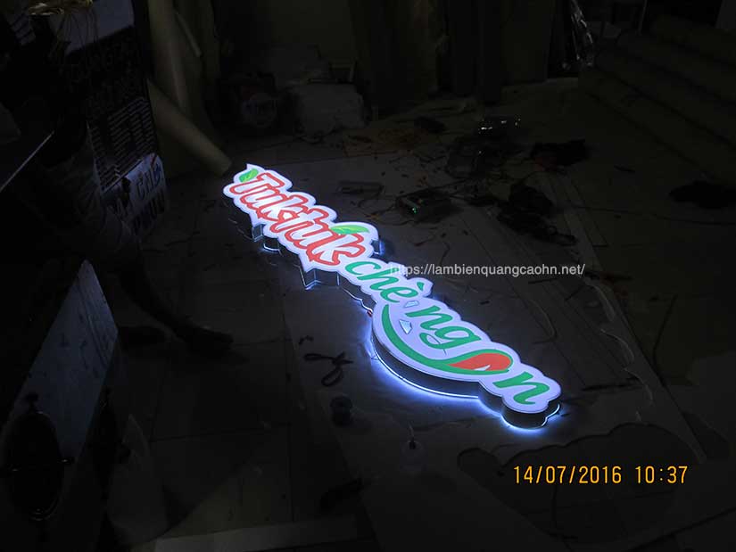 Đây là một dạng chữ hộp đèn mica, có nghĩa là nó là một sản phẩm quảng cáo làm từ mica, có dạng hộp bên trong bố trí đèn LED dày đặc để mặt mica sáng nhất có thể. Hộp đèn này có hình thù đặc biệt vì chúng có dạng một ký tự, một phần hình logo và sau cùng được ghép lại với nhau thành nội dung hoàn chỉnh. Chúng ta có thể in lên hoặc chúng ta có thể dán decal lên mặt nó.