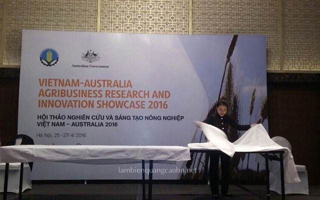 Chúng tôi nhận thiết kế lắp đặt phông hội nghị, hội thảo và các vật phẩm quảng cáo liên quan như standee, tờ rơi, banner hội thảo... Tất nhiên là với một mức chi phí dễ chịu và thứ mà bạn nhận được là một nàng hoa hậu. 0904.76.93.98