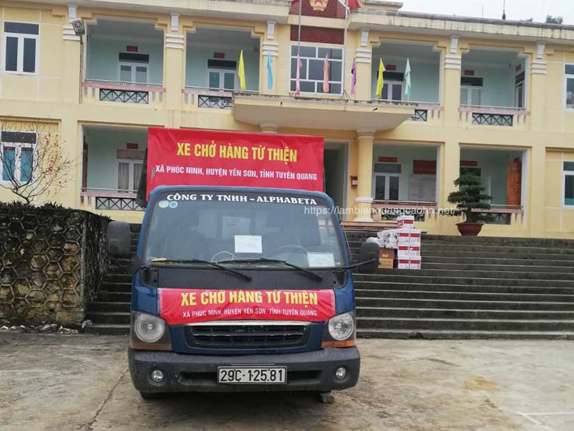 Xe thàng từ thiện chở nhu yếu phẩm và thuốc đi Tuyên Quang